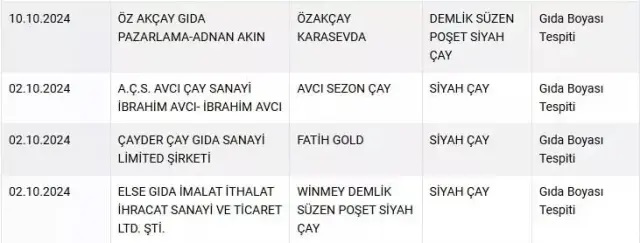 Güncellenen listede yer alan çay markaları ve ilgili ürünler kamuoyu ile paylaşıldı. Halkın, bu ürünlere karşı dikkatli olması istendi.