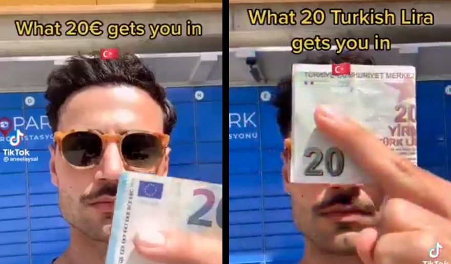 Bir vatandaşın, 20 TL ile 20 EURO’yu karşılaştırması sosyal medyada gündem oldu.