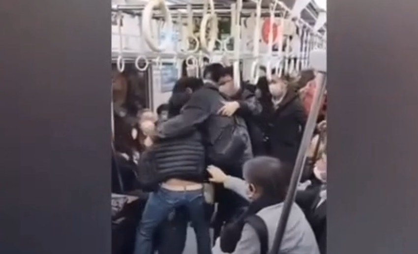 Japonya’daki Görüntüler, Ülke Gündemine Oturdu, 2 Kişi, Diğer Yolcular Rahatsız Olmasın Diye Sessizce Metroda Kavga Etti