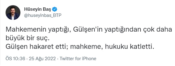 Mahkemenin yaptığı, Gülşen’in yaptığından çok daha büyük bir suç. Gülşen hakaret etti; mahkeme, hukuku katletti.