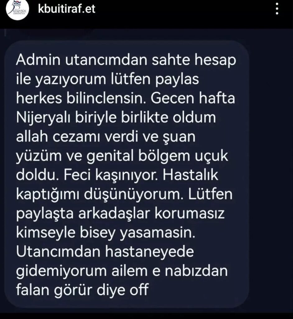 Karabük Üniversitesi’nin itiraf sayfasına gelen bazı itiraflar hem şehri hem de sosyal medyayı ayağa kaldırdı.