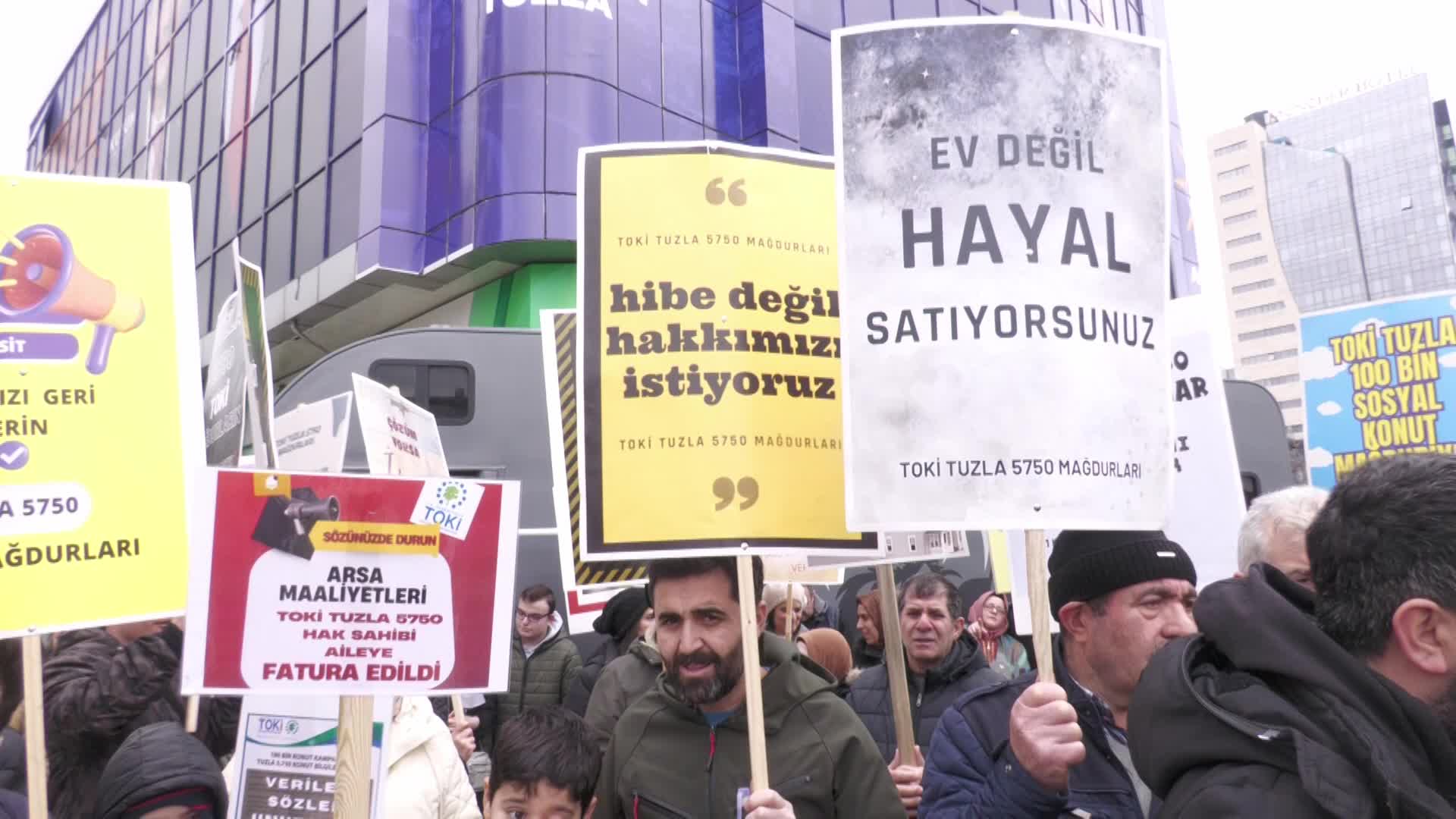 TOKİ mağdurları, AKP Tuzla İlçe Başkanlığı önünde eylem yaptı: “Depremzede değiliz ama TOKİ’zedeyiz.”
