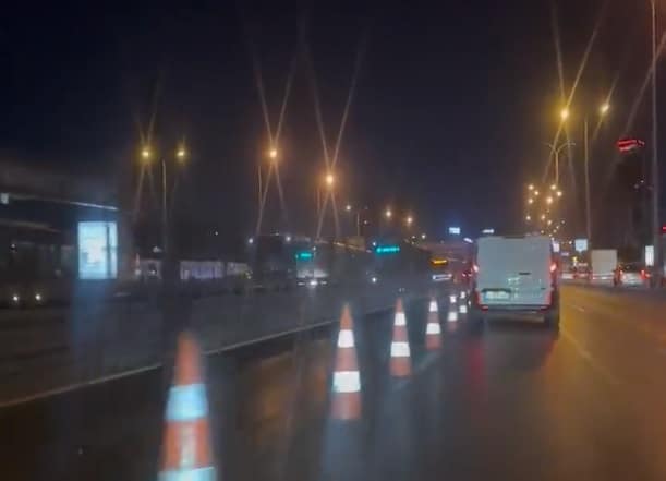 İstanbul’da Araçlı bir şahıs, İBB’nin Metrobüs yol çalışması için konulan dubaları kasıtlı olarak devirip yolcuların can güvenliğini tehlikeye attı.