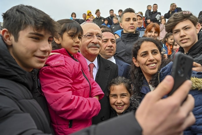 Kemal Kılıçdaroğlu, “Kemal dede, fotoğraf çektirebilir miyiz” diyen çocuklarla hatıra fotoğrafı çektirdi.