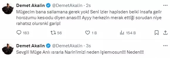 Demet Akalın ise bu açıklamaları kişisel olarak üzerine alındı ve sosyal medyada Müge Anlı’ya yönelik bir tweet attı. Akalın, Anlı’nın tepkisini anlamadığını ve herkesin merak ettiği bir soruyu sormanın neden rahatsızlık yarattığını sorguladı. Ancak kısa süre sonra Müge Anlı ile telefonla görüştüğünü ve Anlı’nın “Sana söyler miyim, aşk olsun” dediğini belirtti. Bu konuşmanın ardından Akalın, olayın yanlış anlaşıldığını dile getirdi.