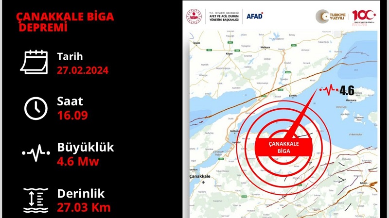 Çanakkale Biga’da 4.6 büyüklüğünde deprem…