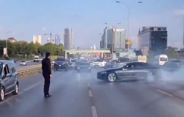 İstanbul Pendik’te trafik magandaları yolu kapatıp drift yaptı.