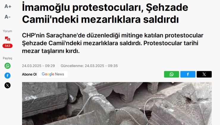 İstanbul Büyükşehir Belediyesinden yapılan açıklamada; Bazı mecralarda, Şehzadebaşı Camii haziresinde bulunan tarihi mezarlara zarar verildiğine ilişkin iddialar yer almaktadır. Konunun hassasiyetine binaen kamuoyunu doğru bilgilendirme ihtiyacı doğmuştur.